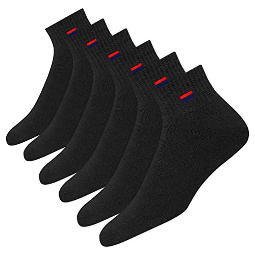 NAVYSPORT Chaussettes Homme 35-38 Sport Coton Coussin Quart Long - Lot de 6 Paires Chaussettes Courtes Unisexe (EU 35 38, Noir)