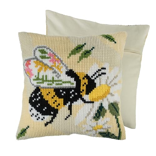 Trimits Kit de coussin au point de croix, dos de coussin inclus, toile pré-imprimée, fil et aiguille inclus 40 x 40 cm (15,75 x 15,75 in) - Abeille Florale