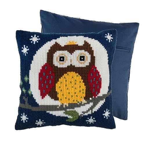 Trimits Kit de coussin au point de croix, dos de coussin inclus, toile pré-imprimée, fil et aiguille inclus 40 x 40 cm (15,75 x 15,75 in) - Hibou Nocturne