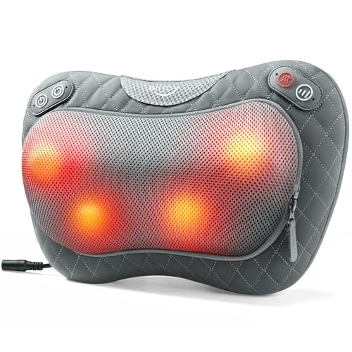 Snailax Masseur dorsal Shiatsu avec chaleur, coussin de massage pour massage par pétrissage profond Détente, masseur portable pour le dos et la nuque, cadeaux