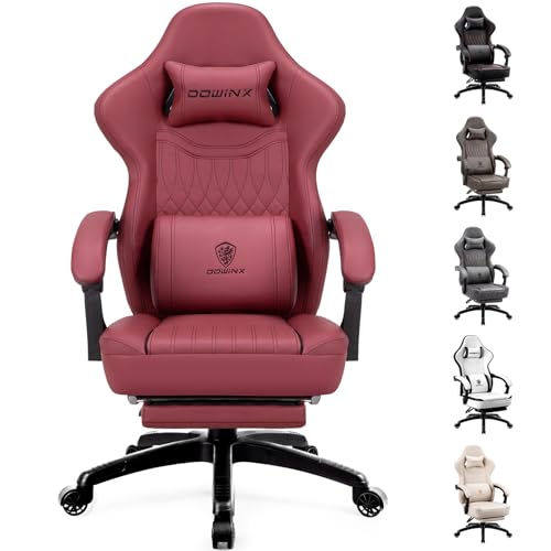 Dowinx Chaise de Jeu avec Coussin Printemps, Course Massage, Soutien Lombaire, Fauteuil Ergonomique Repose-Pieds, Bureau en Cuir synthétique Noir Bourgogne