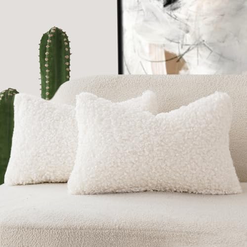 Foindtower Lot de 2 Housses de Coussin décoratives en Peluche bouclée, Effet Fourrure, pour Chaise et canapé, 30,5 x 50,8 cm, Blanc