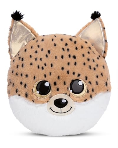 Coussin en Peluche GLUBSCHIS Lynx Lenzo 32x32cm Brun - Oreiller en Peluche Doux pour Les garçons, Les Filles - idéal pour la Maison, la Maternelle ou en déplacement