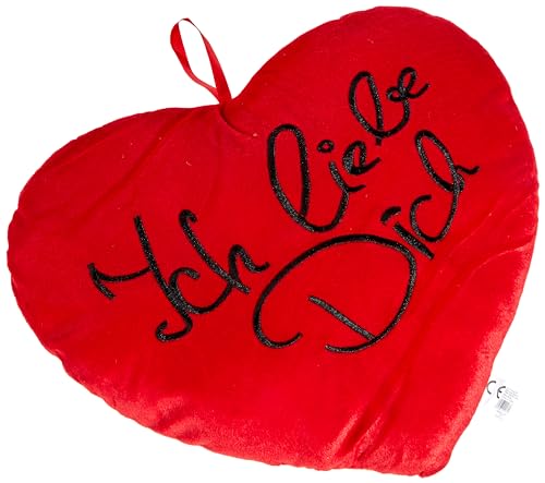 Out of the blue Coussin en Peluche en Forme de cœur avec Inscription « Ich Liebe Dich » - 34 cm - Rouge