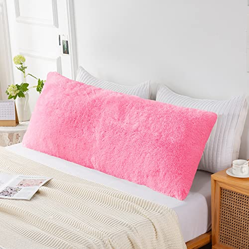 ROLJZTY Housse de Coussin en Fausse Fourrure Duveteuse avec Fermeture éclair, 53,3 x 137,2 cm, Housse de Coussin en Peluche Douce et pelucheuse pour Femme Enceinte Qui dorment sur Le côté, Rose Clair