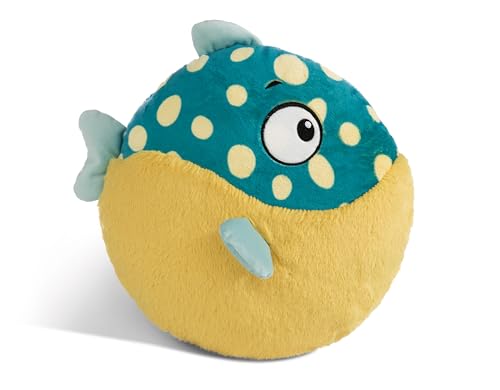 NICI Coussin de voyage Poisson-ballon Volker 28cm - Coussin moelleux pour filles, garçons & bébés, Coussin rond en peluche avec ruban flexible en peluche - 49797