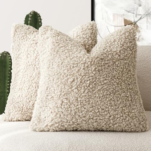 Foindtower Lot de 2 Housses de Coussin décoratives en Peluche bouclée, Effet Fourrure, pour lit, canapé, Salon, 50,8 x 50,8 cm, Kaki Clair