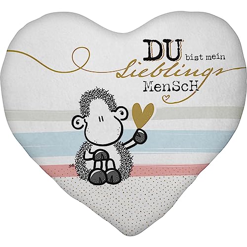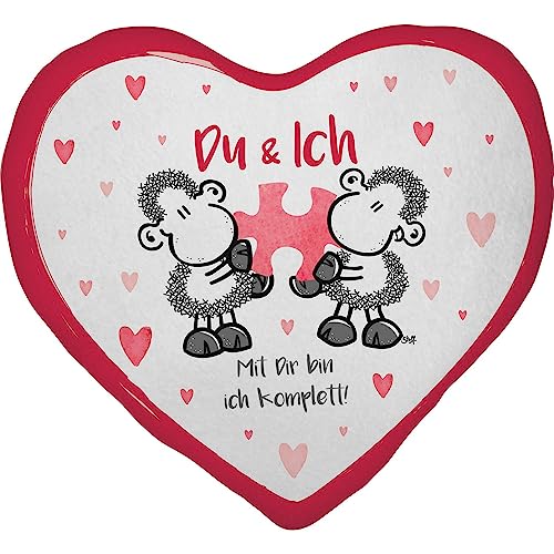 Sheepworld Coussin en Peluche Motif du & Moi - en Forme de cœur - 30 cm x 25 cm - Multicolore - 100% Polyester - Cadeau d'amour, Saint-Valentin - 48184