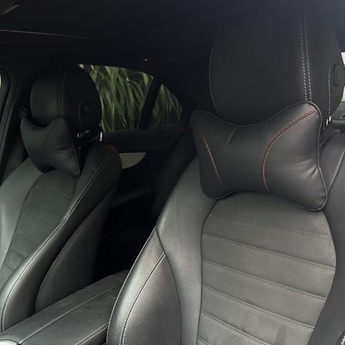 duoyif Coussin Appui-Tête Voiture, 2Pièces Coussin Tete Voiture en Cuir Et Coton, Oreiller Cervical pour Siège Auto Sièges Bureau, Oreiller De Cou pour Conducteur Passager (f Noir Rouge)