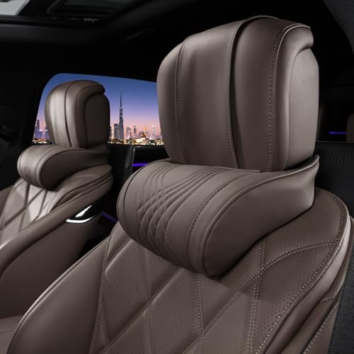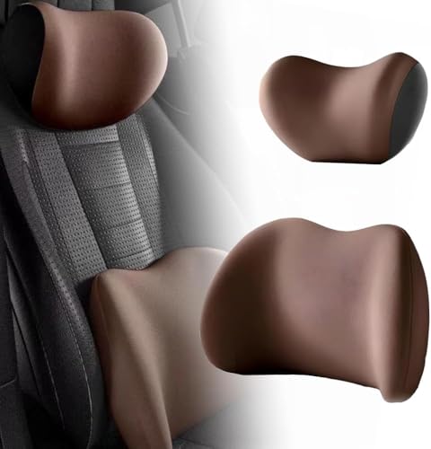 Treesiche Appui Tete Voiture, Appuie-tête réglable pour Voiture avec Sangles Ajustables, Coussin de Cou pour Soulager Les Douleurs Cervicales et Soutien, 2 Piece, Brun