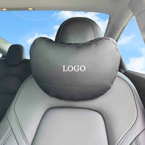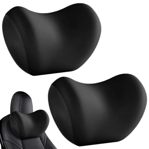 Ywooon 2 Packs Appui Tete Voiture pour Tesla Model Y Model 3 Model X Model S Coussin de Soutien Cervical en Cuir Nappa Noir pour Tesla Coussin de Soutien Cervical pour Voyage/Bureau/Maison
