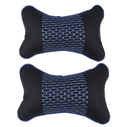 YARNOW Oreiller de Repos Cervical en Cuir Artificiel Bleu Rembourrage en Coton PP, Coussin Confortable pour Appui-tête de Voiture, Soutien du Cou pour Siège Conducteur et Passager