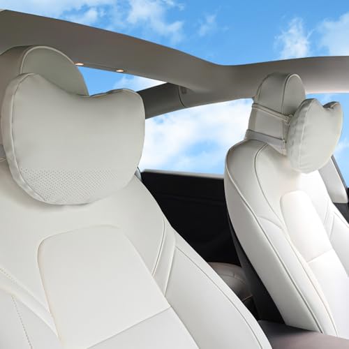 Ywooon 2 Packs Appui Tete Voiture pour Tesla Model Y Model 3 Model X Model S Coussin de Soutien Cervical en Cuir Nappa Blanc pour Tesla Coussin de Soutien Cervical pour Voyage/Bureau/Maison