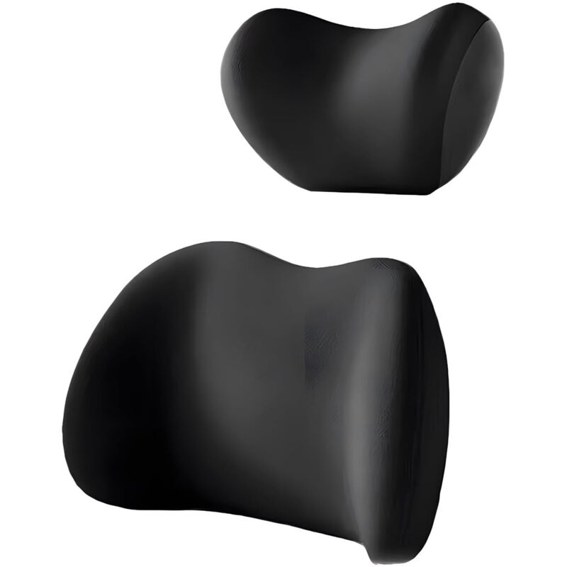 ODIWEN Coussin Lombaire + Appui-tête, Appui Tete Voiture+Coussin Lombaire Voiture, Oreiller Appui-Tête De Siège De Voiture, Repose-Tête, pour Chaise de Bureau et Voiture (Noir)