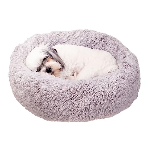 Best Friends by Sheri The Original Calming Donut - Coussin pour Chat/Chien - Fourrure à Poils Longs/Lavable en Machine - Givre - 58 x 58 cm - S