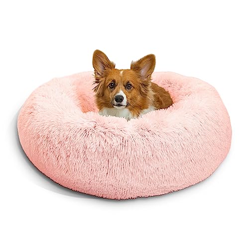 Best Friends by Sheri The Original Calming Donut - Coussin pour Chat/Chien Shag - Fausse Fourrure - Rose - M/76 x 76 cm