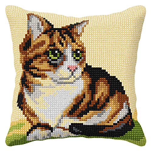 Orchidea Cross Stitch: Cushion Point de Croix : kit, Coussin pour Chat, 40 x 40 cm