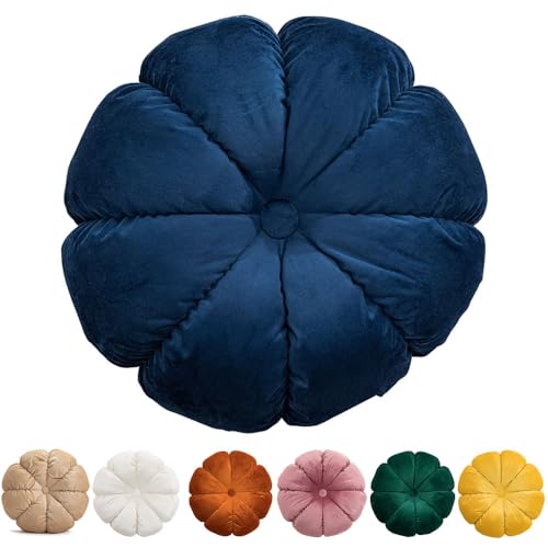 Surwin 45cm Coussin de Sol Coussin Chaise de Citrouille, Coussin Rond Coussins de Jardin Coussin Sol Tatami pour Yoga Méditation Tea Party Balcon Salon Enfant Adultes (45cm,Bleu Marine)