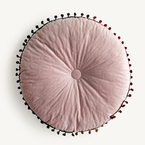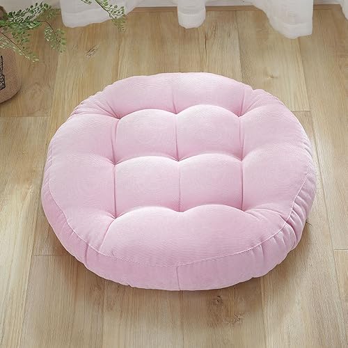 Surwin Coussin de Sol Coussin Chaise, Coussin Rond Coussins de Jardin Coussin Sol Tatami pour Yoga Méditation Tea Party Balcon Salon Enfant Adultes (47cm,Rose)