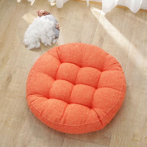 Surwin Coussin de Sol Coussin Chaise, Coussin Rond Coussins de Jardin Coussin Sol Tatami pour Yoga Méditation Tea Party Balcon Salon Enfant Adultes (55cm,Orange)