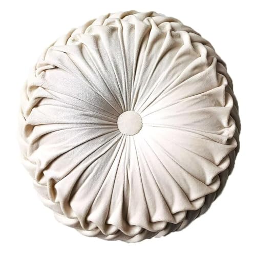 Teieas Elero Coussin Rond en Velours pour décoration d'intérieur, Coussin Rond plissé pour canapé, Chaise, lit, Voiture - Beige