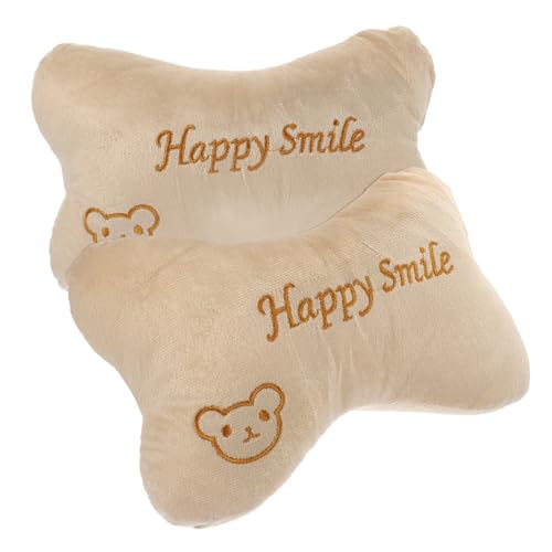 Baluue 2 pièces Coussin de Nuque Voiture Peluche Respirant et Ergonomique Appui-tête Confortable pour Conduite et Voyage Support Cervical Souple pour Siège Auto Beige Motif Ours