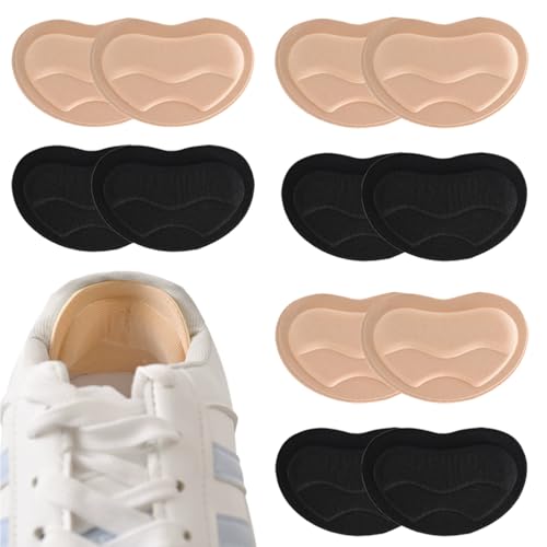 NOPVUFA 6 Paires Coussinet Talon Chaussure Trop Grande, Protege Talon Chaussure, Auto Adhésif, Protections pour Talons pour Homme et Femme, Contrefort Arrière Chaussure, Noir Beige
