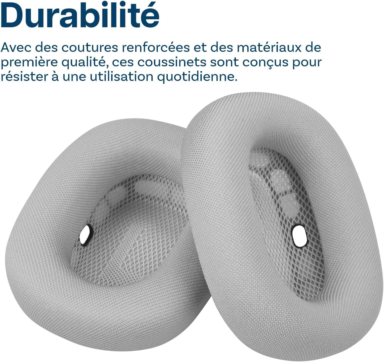 Remplacement Coussinets d'oreille pour AirPods Max Casque par MMOBIEL – Memory Foam et Mesh Fabric Coussinet Casque – Coussinets de Rechange – Argent