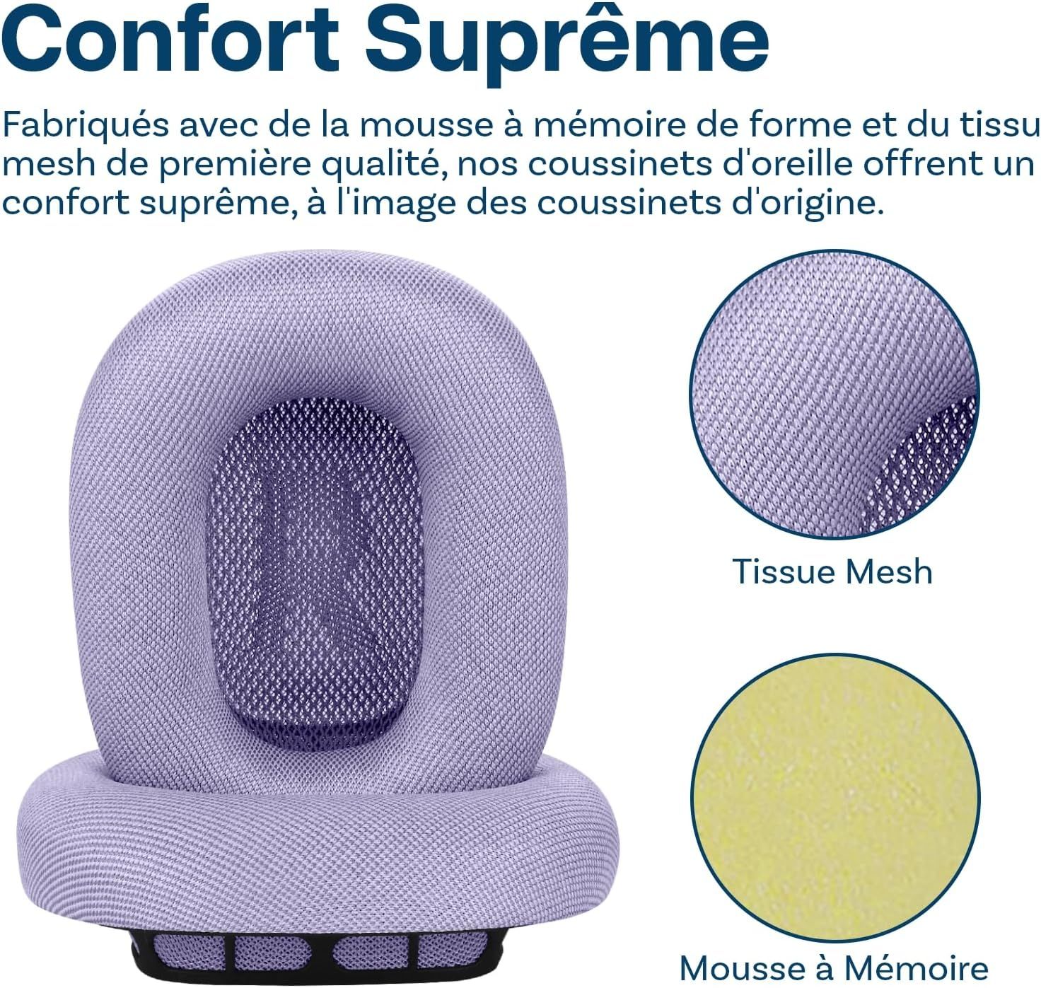 Remplacement Coussinets d'oreille pour AirPods Max Casque par MMOBIEL – Premium - Memory Foam et Mesh Fabric Coussinet Casque avec Couche de Silicone – Coussinets de Rechange – Mauve