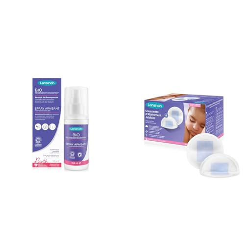 Lansinoh I Spray apaisant post-accouchement BIO - 100ml & Blue Lock Lot de 100 coussinets d'allaitement Blanc