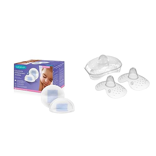 Lansinoh Blue Lock Lot de 100 coussinets d'allaitement Blanc & MAM, Bouts de sein –(taille M, 20 mm) – Accessoire spécial allaitement doux comme la peau avec boîte de stérilisation
