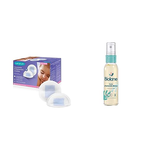 Lansinoh Blue Lock Lot de 100 coussinets d'allaitement Blanc & BIOLANE - Huile d'Amande Douce - Nouveau Packaging - Bébé - Hydrate et protège la peau - Vitamine E