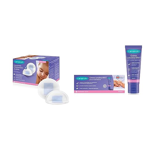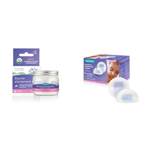 Lansinoh I Baume Allaitement BIO & Blue Lock Lot de 100 coussinets d'allaitement Blanc