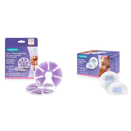 Lansinoh I Compresses Thermoperles 3 en 1 apaisantes chaud/froid & Blue Lock Lot de 100 coussinets d'allaitement Blanc