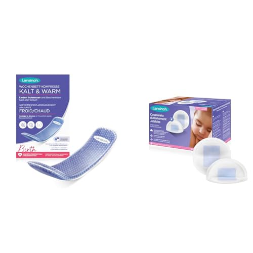 Lansinoh I Serviette Post-accouchement apaisante chaud/froid & Blue Lock Lot de 100 coussinets d'allaitement Blanc