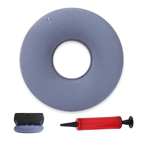 YZROHYI Bouée Coccyx,Donut Coussin Fesses Douloureuse,Assise Anneaux Coussin Hémorroïdes Gonflable,Coussins Orthopédique Coccyx,Anti Escarres Fessier Coussins de Siège avec Pompe pour Bureau-Gris
