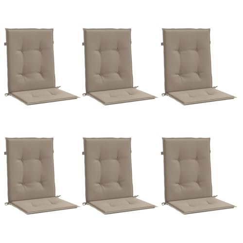 vidaXL Lot de 6 Coussins de Chaise de Jardin à Dossier Bas, Coussins de Siège de Patio, Coussins de Canapé de Jardin, Coussins d'Assise Extérieur, Taupe