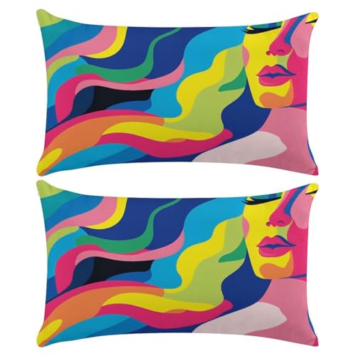 Housse de Coussin 35x55 cm Lot de 2 Taie D'Oreiller Multicolore Coussin Canape Decoration Abstrait Housses de Coussins en Lin Rectangulaire Coussins Décoratifs pour Salon Chambre Jardin (XY154)