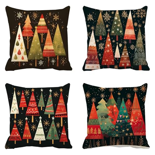 Coussin Canape 35 x 35 Lot de 4 Les Arbres Taie Oreiller Rouge Housse Coussin Lin Coussins Canapé Housse Oreiller, Respirant Taies D'oreillers Carré Coussins Décoratifs, pour Decoration Salon a-812