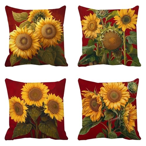 RYBornament Housse de Coussin 45x45 Coussin Canapé Décorative Tournesol Impression Lot de 4 Taie d'oreiller Lin Coussins Décoratifs pour Canapé Maison Salon Chambre Décoration D'intérieur