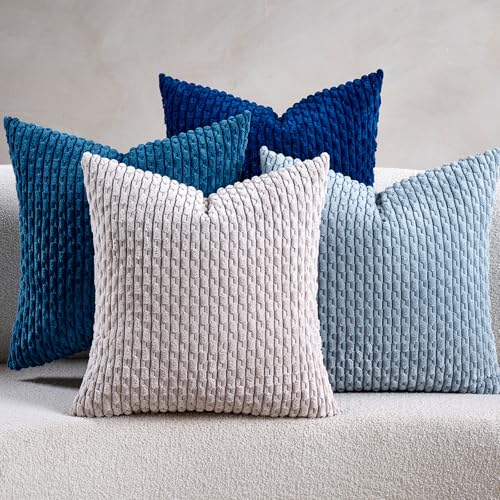 ANBURG Housse Coussin Canape 45x45 Bleu Dégradé en Velours Côtelé, Lot de 4 Coussins Décoratifs Boheme pour Canapé, Salon et Chambre, Super Doux Housse de Coussin 45x45