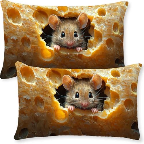 Fromage Lot de 2 Housses de Coussins en Velours Décoratif Canapé Taie d'oreiller avec Fermeture éclair Invisible, Doux Confortable Coussins Décoratifs pour Salon Chambre 40 x 60 cm Souris j0l-1313