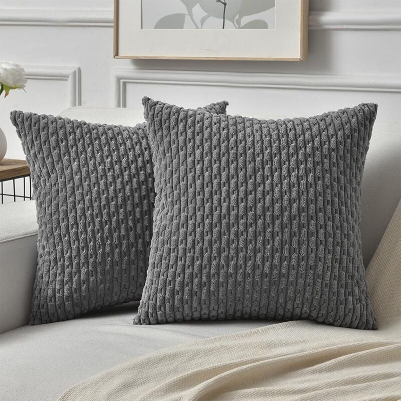 ANBURG Housse Coussin Gris 45x45 en Velours Côtelé | Lot de 2 Coussins Décoratifs Bohème pour Canapé, Salon et Chambre, Super Doux Housse de Coussin 45x45