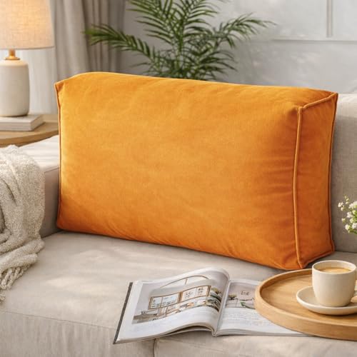 GYCS Coussins Multiples : pour Dossier Canapé, Tête De Lit, Lecture Au Lit, Soutien Lombaire Ergonomique - Lavables, Adaptés Au Canapé, Bureau & Tatami,Orange,100X12X45CM