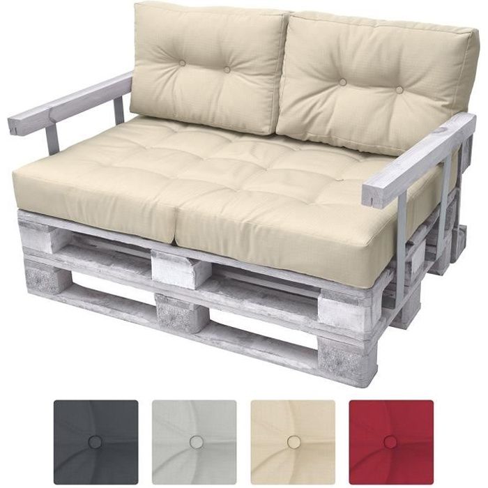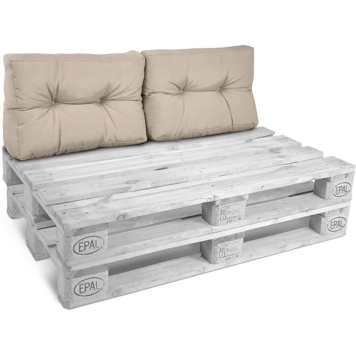 Beautissu ECO Style Set de 2 coussins de Dossier pour Canapé en palette - 60x40x10-20cm chacun - Beige - Extérieur Euro Palette