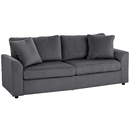 HOMCOM Canapé 3 Place Velours côtelé 212 cm, canapé Moderne avec 2 oreillers Inclus, Coussins à Ressorts, accoudoirs et Dossier rembourrés, Sofa pour Salon, Chambre, Bureau, Gris foncé