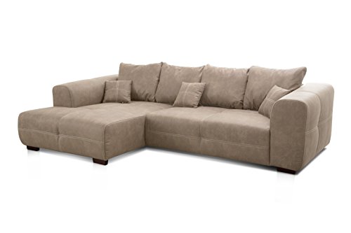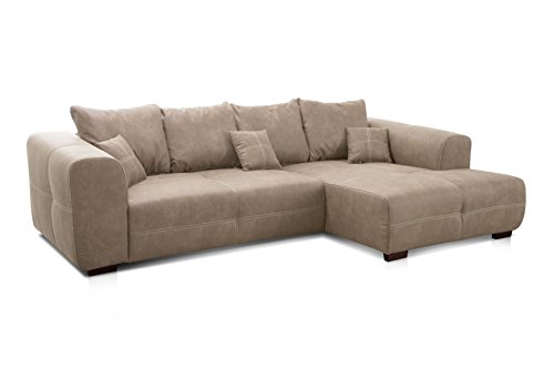 Cavadore Big Sofa Mavericco Grand canapé au Design Moderne Aspect Cuir avec Coussin de Dossier et Coussins décoratifs 287 x 69 x 108 cm (l x H x P) en Microfibre Marron Clair