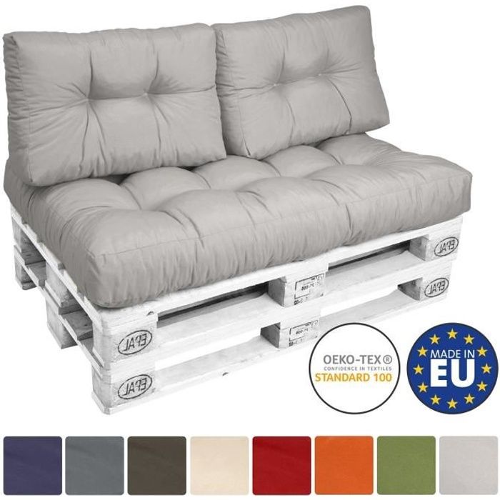 Beautissu ECO Style Set de 2 coussins de Dossier pour canapé en palette 60x40x10-20cm chacun - Gris clair - Extérieur Euro palette