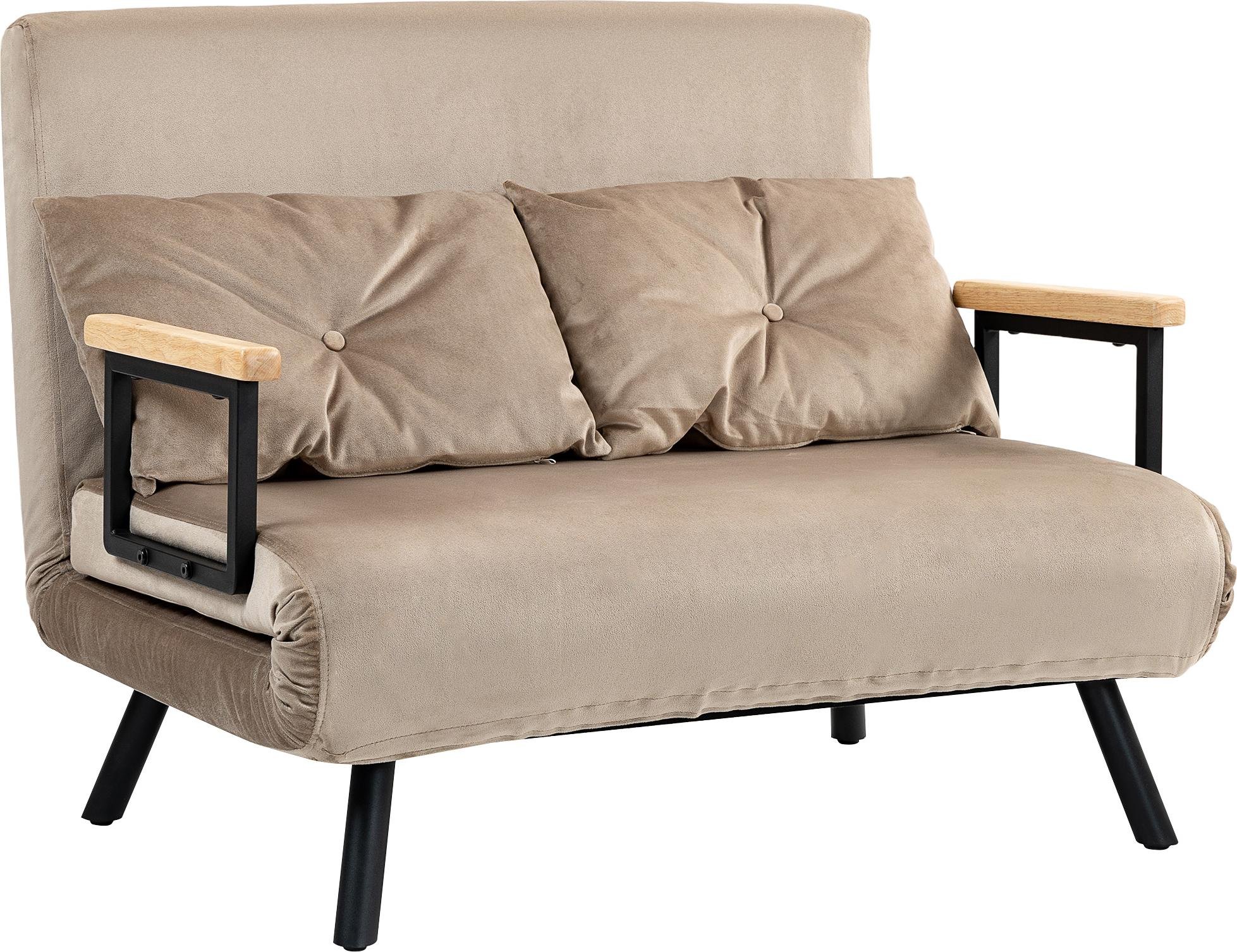 Canapé double moderne en velours pour salon avec coussins dossier réglable canapé lit confortable rembourrage pieds en métal couleur beige