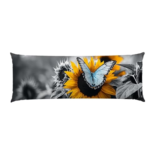 Oreiller de Corps 145x40cm Lot de 1 Papillons de Tournesol Taie d'oreiller Velours Coussins, Coussin de Grossesse Dormir Oreiller avec Fermeture éclair Invisible pour Salon Chambre Décor B-676